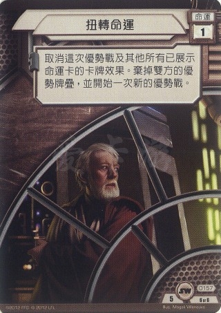 说明取消这次优势战及其他所有已展示命运卡的卡牌效果。弃掉双方的优势牌叠,并开始一次新的优势战。